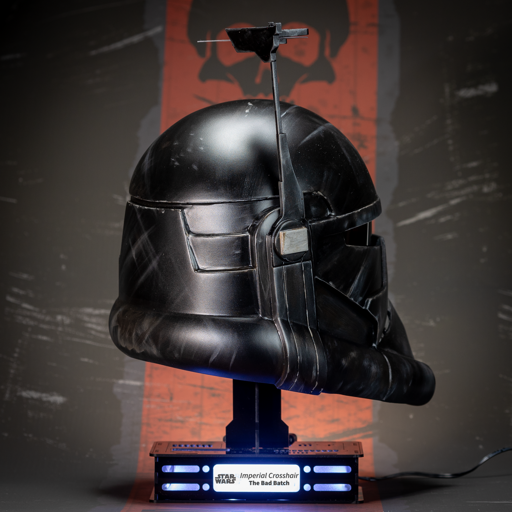 This recreation of Imperial Crosshair's helmet from The Bad Batch is a must-have for the ultimate Star Wars fan! Meticulously recreated using 3D printing technology and finished by hand, it is a true masterpiece. And you can sport it for cosplay or display with pride.